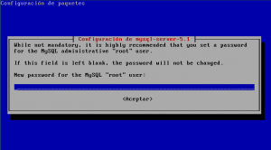 Al instalar nos pedirá introducir un password para el usuario de base de datos root, recomiendo no dejarlo en blanco.